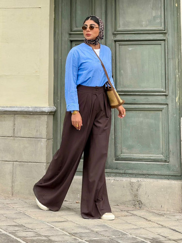 ناموجودپانچو شلوار ست رنگ صدری لینن ترک